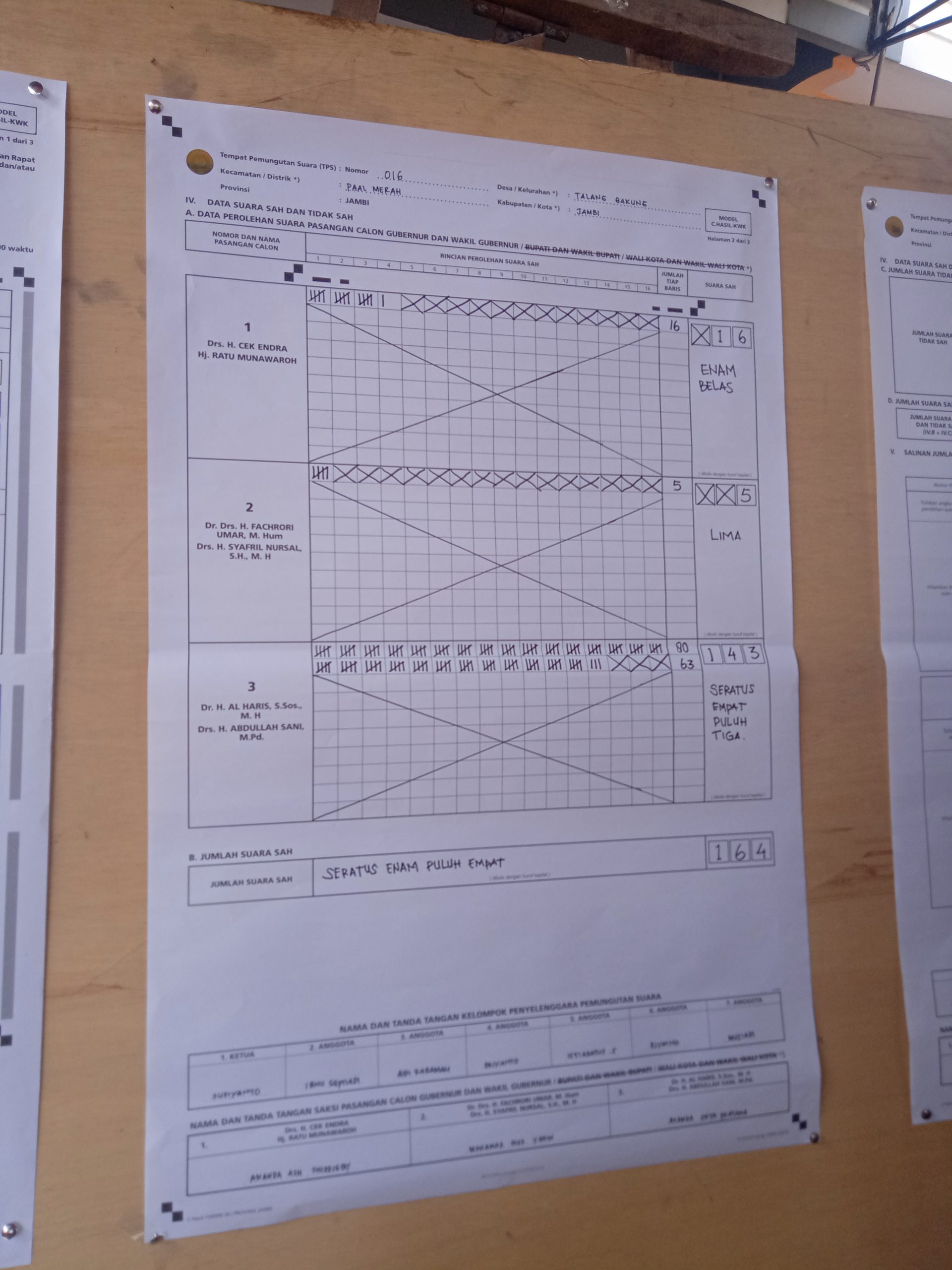 Berdasarkan hasil penghitungan suara, Rabu (09/12) , Calon Wakil Gubernur Jambi yang berpasangan dengan Al Haris nomor urut 3 tersebut meraih sebanyak 143 (Seratus Empat Puluh Tiga) Suara sedangkan lawannya pasangan no urut 01 Cek Endra – Ratu Munawaroh mendapat 16 (enam belas) suara dan pasangan nomor urut 2 pasangan Fachrori Umar dan Syahril Nursal mendapatkan 5 (lima) Suara.