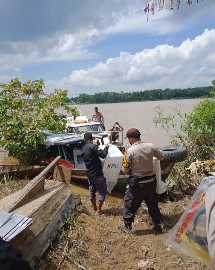 Kapolres Muaro Jambi AKBP Ardiyanto melalui Kasubsektor Taman Rajo Ipda Budi Sitinjak mengatakan, pengiriman Logisitik pilkada di 4 Desa melalui jalur air.