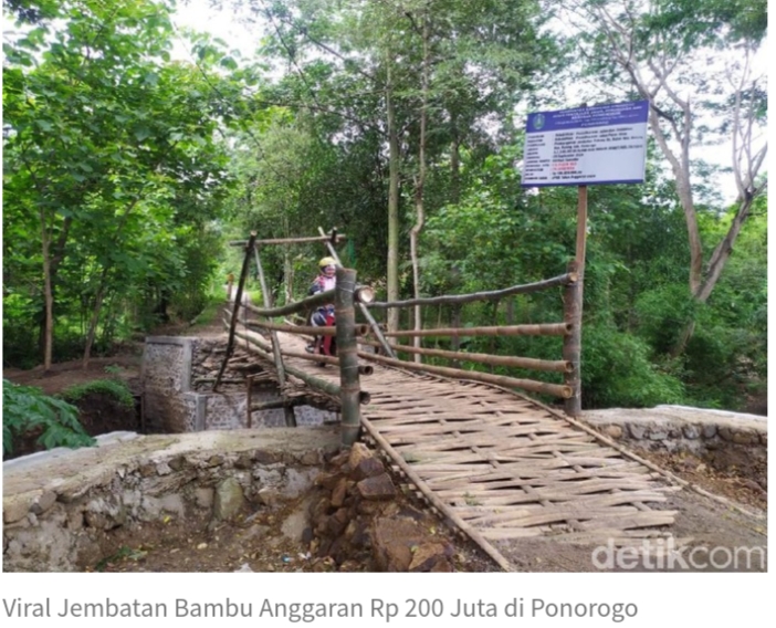 Haloindonesianews.com, Ponorogo – Sebuah jembatan bambu di Ponorogo tengah menjadi perbincangan. Sebab, jembatan penghubung antardesa tersebut diduga dibangun dengan dana Rp 200 juta.