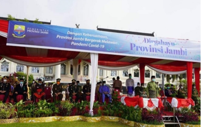 Fachrori mengatakan, berbeda dengan tahun-tahun sebelumnya, peringatan HUT Provinsi Jambi yang biasanya digelar dengan banyak peserta upacara, tapi kali ini digelar secara sederhana, khidmat, sangat minimalis dan mematuhi Protokol Kesehatan Pencegahan Covid-19 di Provinsi Jambi.