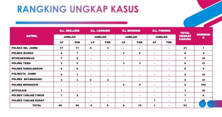 dari 17 laporan kasus ilegal drilling , 17 tersangka dan illegal logging 4 kasus yang terjadi di wilayah hukum Polres Muarojambi awal tahun 2021 ini sudah berhasil mereka ungkap semua tersangka sudah ditahan dirutan polres muaro jambi.