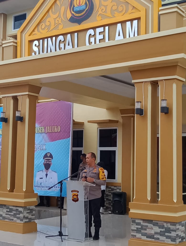 ” Terima kasih kepada Kapolda Jambi dan Bupati Muaro Jambi, dan forkopimda Kabupaten Muaro Jambi untuk menghadiri peresmian Gedung baru Polsubsektor Sungai Gelam.