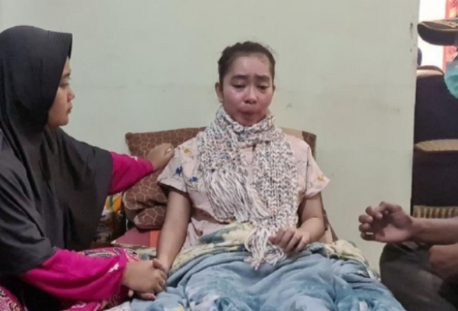Tangan perempuan berusia 31 tahun itu memegang erat jemari Yayu Yuliani (26) sang adik. Kondisi Susan kian membaik setelah sebelumnya menjalani perawatan selama 23 hari di RSHS Bandung.