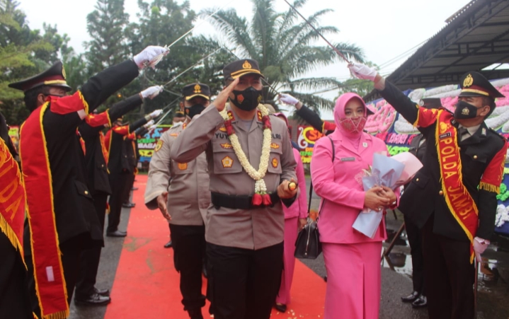 Kapolres Muaro Jambi AKBP Yuyan Priatmaja, S I.K, tiba di Mapolres Muaro Jambi sekira pukul 09:30 WIB, didampingi Ketua Bhayangkari Cabang Muaro Jambi Ny Dian Yuyan langsung di sambut dengan Seloko Adat dan Pedang Pora. Mulai dari gerbang masuk Mapolres hingga di depan Lobby Mapolres Muaro Jambi.