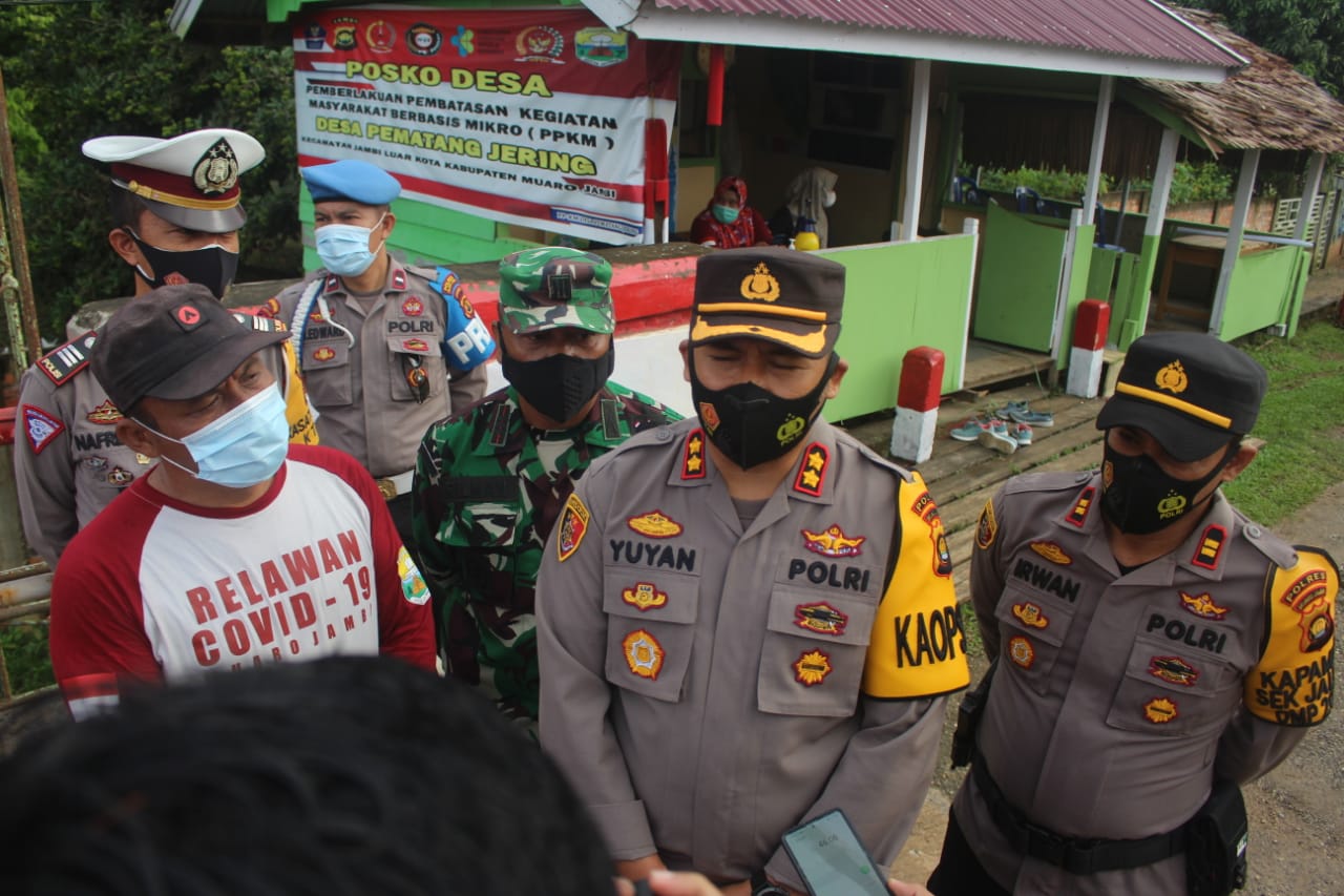 Kapolres Muaro Jambi AKBP Yuyan Priatmaja, S.I.K, menyampaikan bahwa secara Nasional Kabupaten Muaro jambi masuk ke dalam zona merah Covid-19. Maka dari itu, dirinya secara langsung mengecek seluruh fasilitas yang ada di Kampung Tangguh, Desa Pematang Jering sesuai dengan intruksi dari Menteri Dalam Negeri, tentang PPKM berksala mikro.