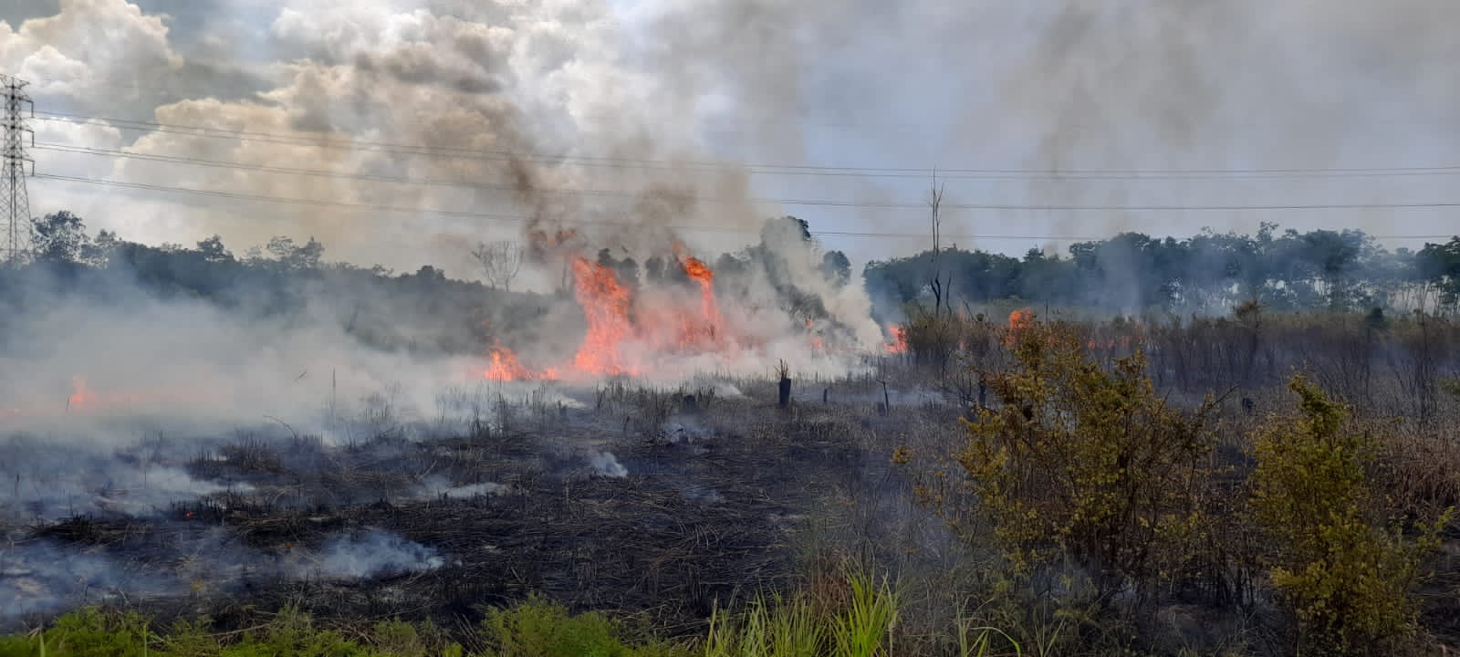 Si jago merah yang mulai berkobar sekitar pukul 12.30 WIB melalap habis empat hektare lahan yang berada di pinggir jalan lintas Jambi-Muara Sabak, tepat nya di RT. 05, Desa Bakung, Kecamatan Maro Sebo.