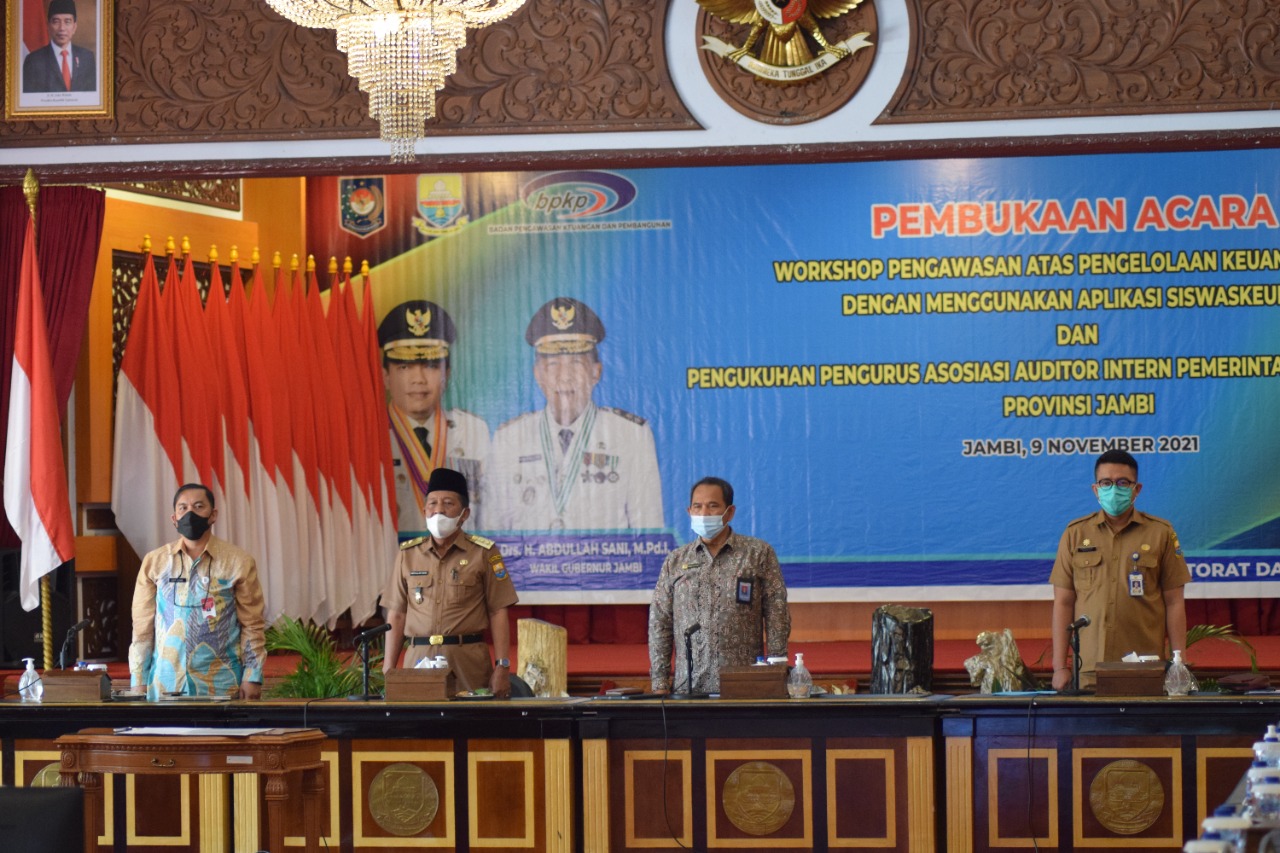 HALOINDONESIANEWS, JAMBI- Wakil Gubernur Jambi Buka Workshop pengawasan atas pengelolaan keuangan desa dengan menggunakan aplikasi dan resmi melantik Pengurus Asosiasi Auditor Intern Pemerintah Indonesia (AAIPI) Wilayah Provinsi Jambi periode 2021-2024, selasa (09/11/2021).