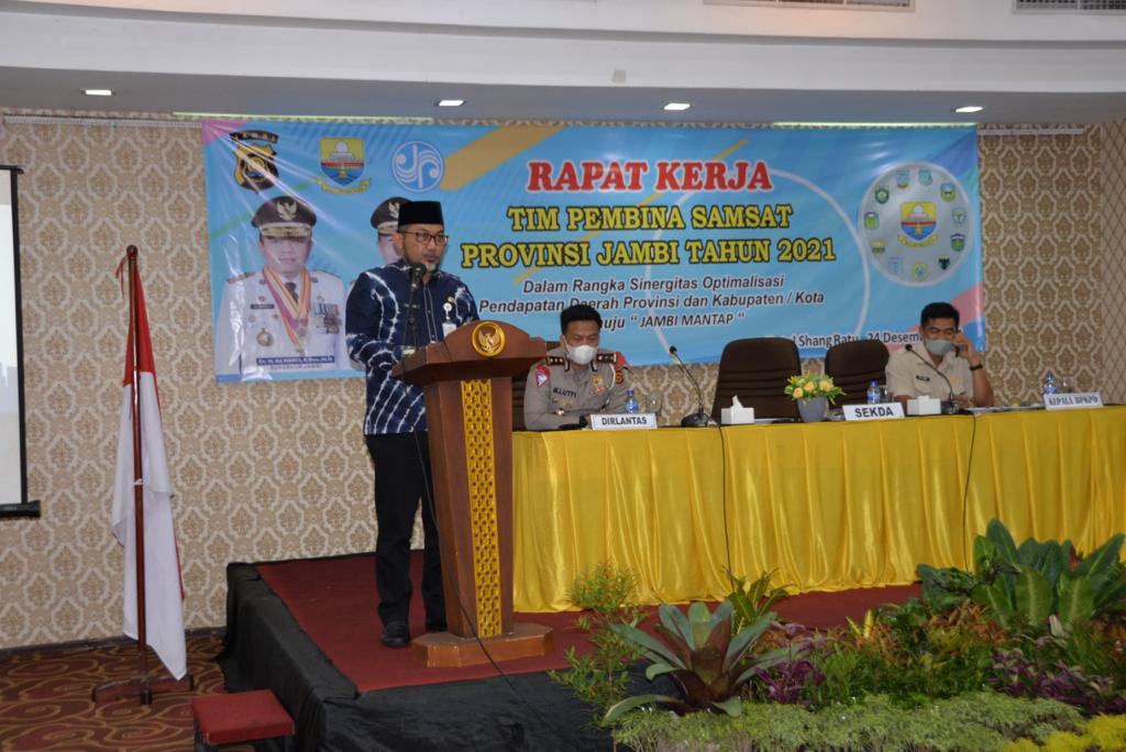Hal tersebut dikemukakan Sekda saat membuka Rapat Kerja Tim Pembina Samsat Provinsi Tahun 2021, yang berlangsung di Hotel Shang Ratu Jambi, Jum’at (24/12/2021).
