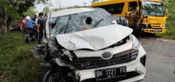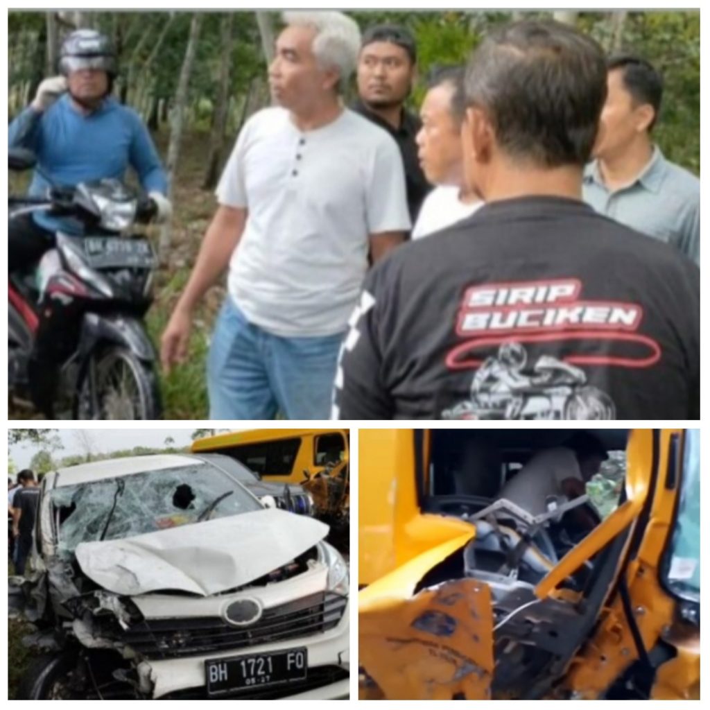 Kecelakaan lalu lintas yang melibatkan antara mobil Avanza BH 7012 FI dengan mobil minibus BH 7012 FI menyebabkan pengemudi dan penumpang kedua kendaraan tersebut mengalami luka-luka.