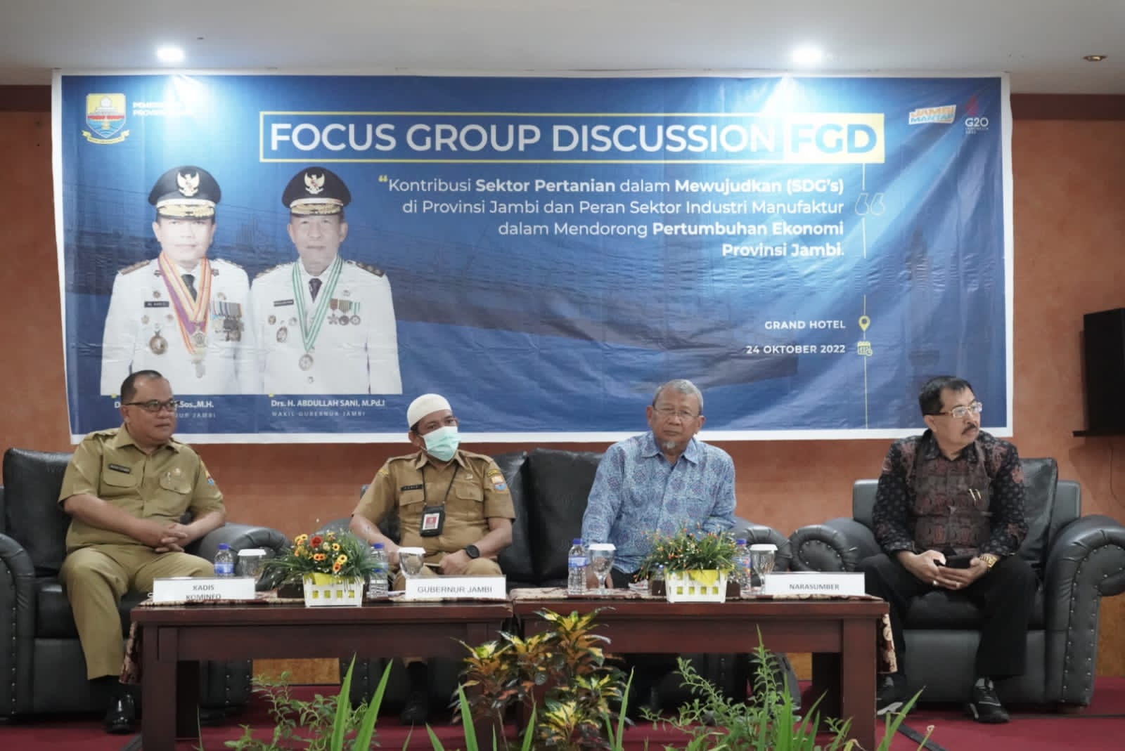 HALOINDONESIANEWS, JAMBI – Gubernur Jambi, Dr. H. Al Haris, S.Sos, M.H diwakili oleh Staf Ahli Gubernur Bidang Politik, Hukum, dan Pemerintahan, Dr. Donny Iskandar, S.Sos, M.T membuka acara Focus Group Discussion “Kontribusi Sektor Pertanian dalam Mewujudkan (SDG’s) di Provinsi Jambi dan Peran Sektor Industri Manufaktur dalam Mendorong Pertumbuhan Ekonomi Provinsi Jambi” pada Senin (24/10) bertempat di Grand Hotel Jambi.