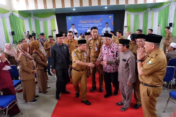 MUARO JAMBI –Ā Halal bi halal Gubernur Jambi dengan Pemerintah Kabupaten Muaro Jambi, beserta tokoh masyarakat Tahun 1444 Hijriah.