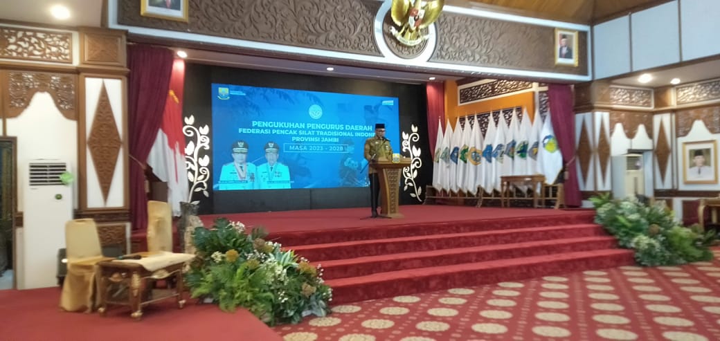 HALOINDONESIANEWS.COM, JAMBI – Sekretaris Daerah (Sekda) Provinsi Jambi H. Sudirman menyampaikan apresiasi kepada Federasi Pencak Silat Tradisional Indonesia (FPSTI) Provinsi Jambi dalam melestarikan budaya pencak silat dan berjalan sesuai dengan visi serta misi pemerintah dalam melestarikan budaya dan nilai tradisi bangsa Indonesia. Hal ini disampaikan Sekda Sudirman saat menghadiri Pengukuhan Pengurus Daerah Federasi Pencak Silat Tradisional Indonesia Provinsi Jambi, bertempat di Auditorium Rumah Dinas Gubernur Jambi, Jumat (26/05/2023).