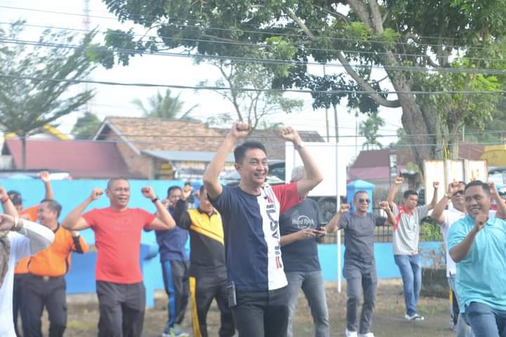 Pj Bupati Muaro Jambi Bachyuni Deliansyah Senam Sehat di Lapangan Kantor Camat Sekernan