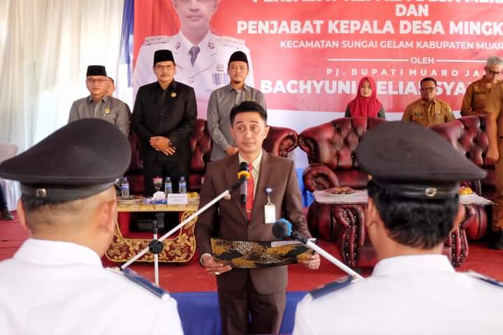 Pj. Bupati Muaro Jambi Bachyuni Deliansyah, dalam Sambutannya mengucapkan selamat kepada Penjabat Kepala Desa yang baru dilantik, dan Pj. Kepala Desa Mekar Jaya dan Kepala Desa Mingkung Jaya yang dilantik ini telah melalui proses pengajuan dari camat dan di Verifikasi oleh Dinas Pemberdayaan Masyarakat Desa Kabupaten Muaro Jambi.