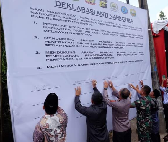 Dalam Deklarasi Kampung bebas Narkoba Desa Kasang Laopak Alai, “Kami masyarakat Desa kasang lopak alai menyadari bahwa narkotika adalah perusak generasi bangsa. Oleh karna itu kami berkomitmen untuk, Menolak segala bentuk penyalahgunaan dan peredaran narkotika dari wilayah kami serta menyatakan perang melawan narkotika., mendukung aparat penegak hukum dalam upaya penegakan hukum sesuai prinsip negara hukum terhadap setiap pelaku penyalahgunaan Narkoba, dan mendukung aparat penegak hukum dalam upaya pencegahan, pemberantasan penyalahgunaan dan peredaran gelap Narkoba ( P4GN), Serta menjadikan kampung kami bebas dan sehat tanpa narkoba.” (Red/Adv)