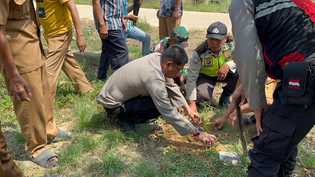 HALOINDONESIANEWS, Muaro Jambi – Kepolisian Sektor Bahar Selatan bersama Pemerintah Desa Bukit Subur, Kecamatan Bahar Selatan, Kabupaten Muaro Jambi melaksanakan kegiatan penanaman pohon di RT.13, Desa Bukit Subur, Selasa pagi, 26 September 2023.