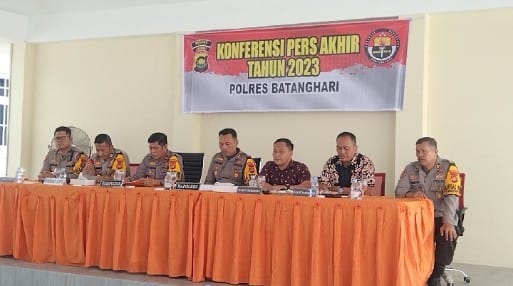 HALOINDONESIANEWS.COM,Batanghari- mengakhiri tahun 2023, Kepala Kepolisian Resor Batang Hari beserta jajaran, menggelar konferensi pers keberhasilan kinerja polres Batanghari selama tahun 2023 dalam mengungkap kasus, press rilis yang di selenggarakan polres Batanghari bertempat di gedung aula Mapolres pada Jumat (29/12/2023).