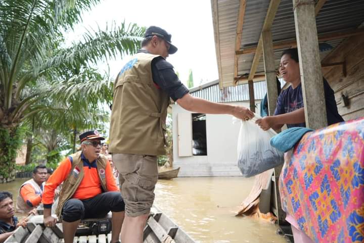 HALOINDONESIANEWS, MUAROJAMBI- Penjabat Bupati Muaro Jambi Bachyuni Deliansyah SH, MH, menyalurkan ribuan paket sembako kepada warga yang terdampak bencana banjir luapan air sungai batanghari, Rabu (24/1/24) Desa Rantau Panjang, Kecamatan Kumpeh Ilir, Kabupaten Muaro Jambi.