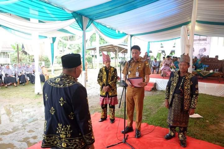 HALOINDONESIANEWS, MUAROJAMBI – Penjabat Bupati Muaro Jambi Bachyuni Deliansyah,SH., MH.,didampingi ketua TP PKK Kabupaten Muaro Jambi Faradillah Zahara Bachyuni,SH., menghadiri pengukuhan Datuk Penghulu Lembaga Adat Desa dan Pelantikan Ketua TP PKK tingkat Desa serta Pelantikan Bunda Paud tingkat Desa di dua Desa, Desa Arang Arang dan Desa Pemunduran Kecamatan Kumpeh Ulu, Senin (29/1/2024).