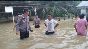 Satu persatu warga yang terdampak banjir, di kunjungi Kapolsek iptu Edi Susanto bersama kades setempat, menghimbau warga agar terus memantau anak anaknya agar tidak bermain air.