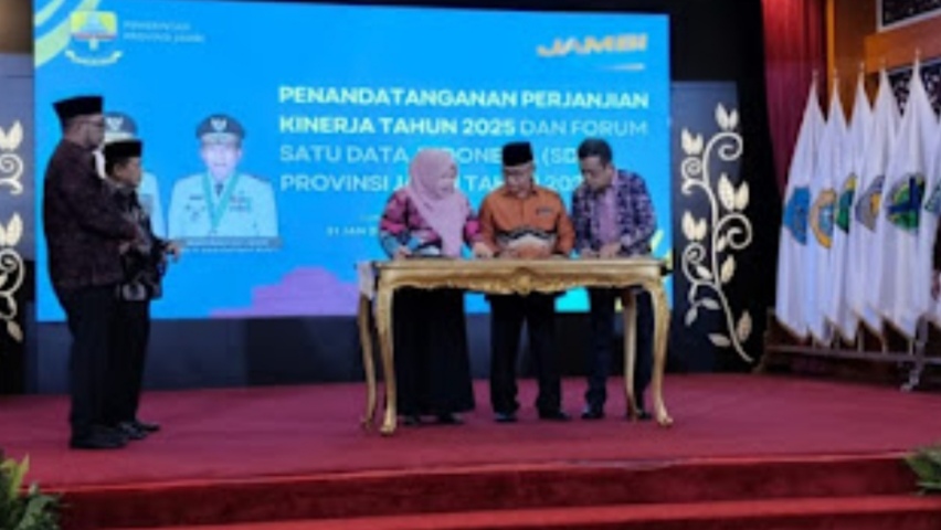 “Saya bersama pak Sekda, staff ahli dan OPD lingkup Pemprov Jambi menandatangani perjanjian kinerja tahun 2025. Mereka bekerja harus sesuai dengan standard dan target yang sudah kita siapkan, Hal ini bertujuan untuk mengukur kinerja mereka,” kata Gubernur Al Haris.