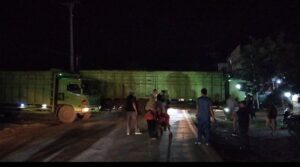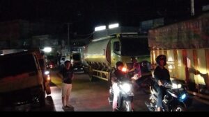 HALOINDONESIANEWS.COM_ Batanghari, Muara Tembesi Sebuah mobil truk tronton, Hino Roda 10 melintang di tengah Jalan Lintas Nasional yang berada di kelurahan Kampung Baru Kecamatan Muara Tembesi Kabupaten Batanghari Rabu malam (26/02/2025), Akibatnya Jalan Lintas Nasional mengalami kelumpuhan selama 2 jam.