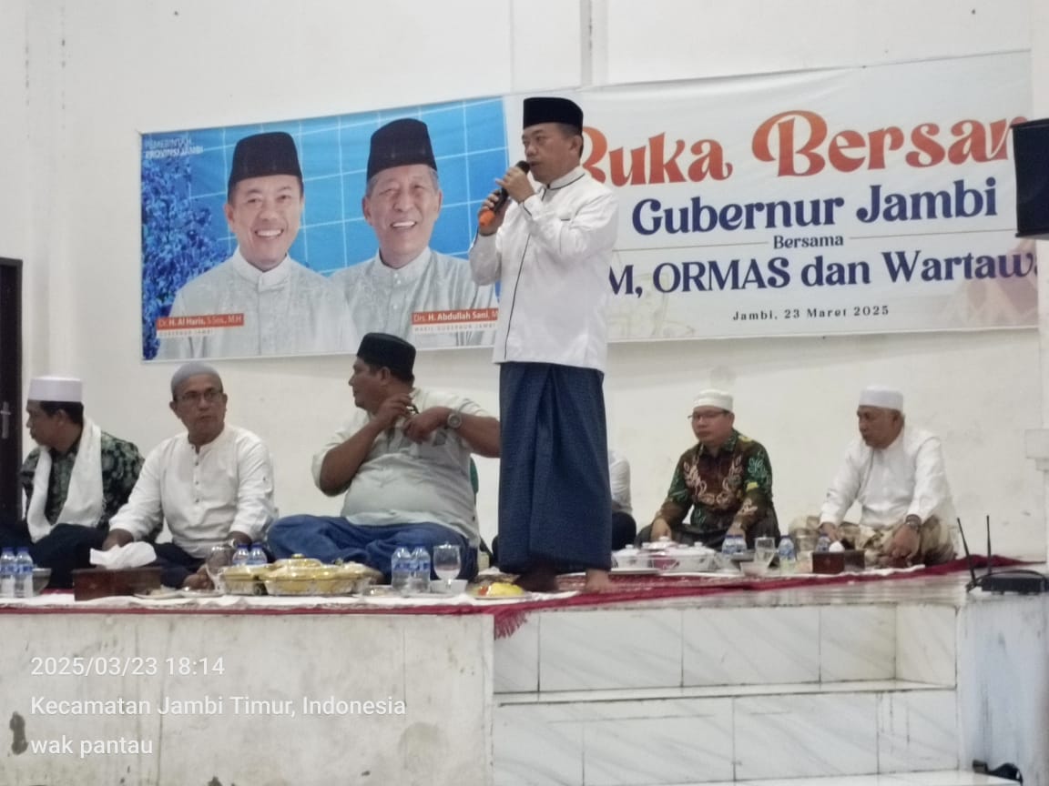 HALOINDONESIANEWS.COM, JAMBI- Pemprov Jambi di hadiri langsung Gubernur Jambi Al haris mengadakan buka bersama LSM, Ormas dan Wartawan di pendopo samping rumah dinas Gubernur Jambi, minggu (23/03/2025).
