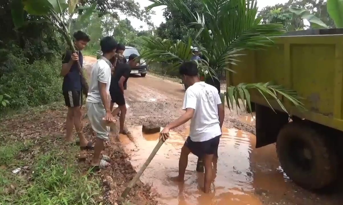 HALOINDONESIANEWS.COM,Muarojambi – Sejumlah pemuda di Desa Mudung Darat, Kecamatan Maro Sebo, Kabupaten Muaro Jambi, Provinsi Jambi melakukan aksi tanam pohon pisang dan pohon pinang di jalan rusak, Sabtu 12 April 2025.