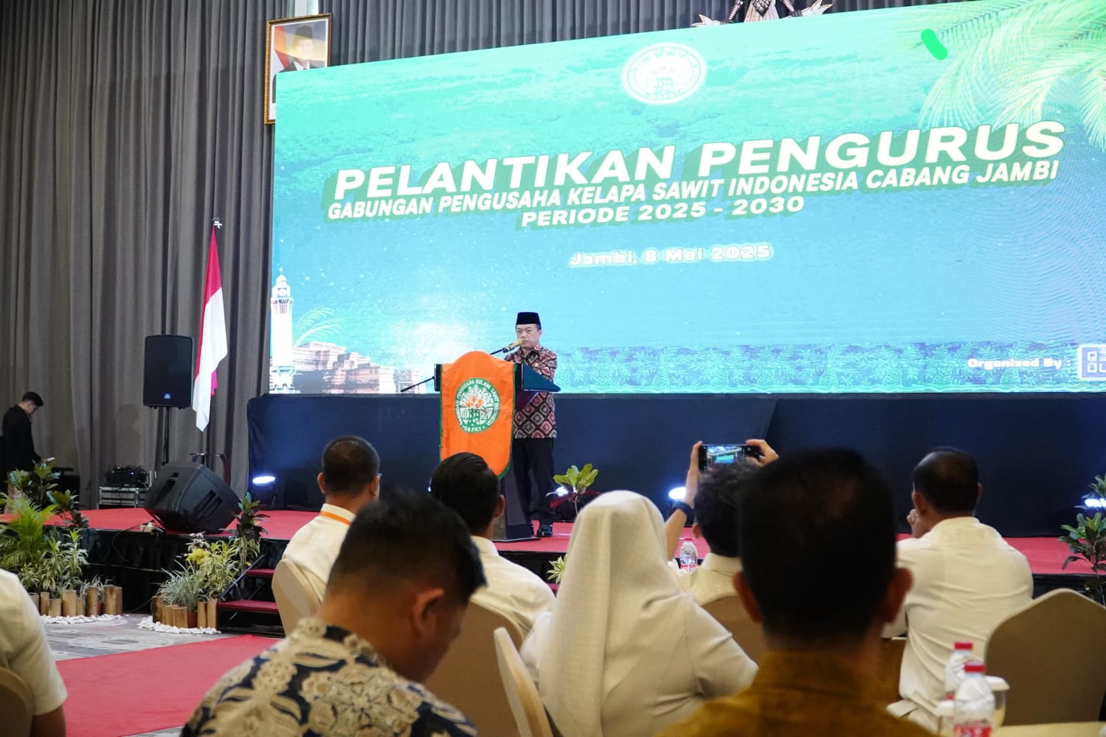 HALOINDONESIANEWS.COM, JAMBI- Gubernur Jambi Dr. H. Al Haris, S.Sos., MH Dr. H. Al Haris, S.Sos., M.H mengupayakan dalam memutus rantai Produksi. Hal tersebut disampaikan dalam Pelantikan GAPKI (Gabungan Pengusaha Kelapa Sawit Indonesia) Cabang Jambi Periode 2025-2030, bertempat di Swisbell Hotel Jambi, Kamis (08/05/2025).