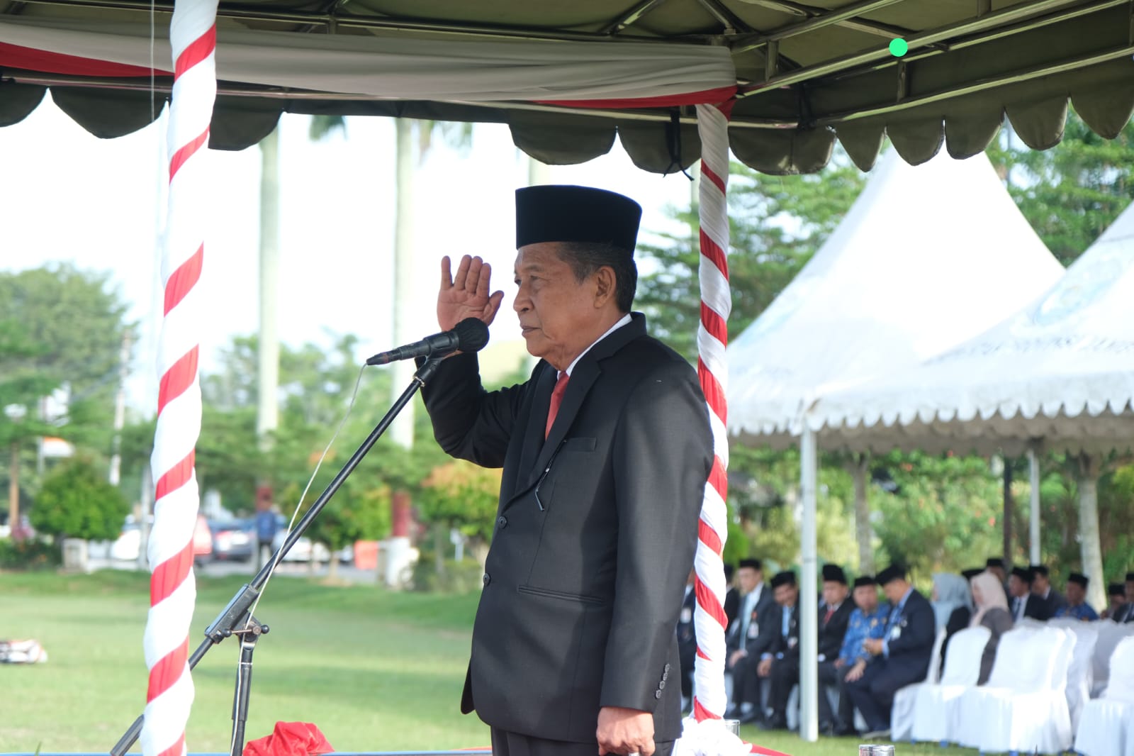 HALOINDONESIANEWS.COM, JAMBI- Wakil Gubernur (Wagub) Jambi Drs. H. Abdullah Sani, M.Pd.I menjadi Inspektur pada upacara Peringatan Hari Kebangkitan Nasional ke-117, dan Sekretaris Satpol PP Provinsi Jambi Dr. Sabri Yanto, SH, MH bertindak sebagai komandan upacara, bertempat di Lapangan Depan Kantor Gubernur Jambi, Selasa (20/05/2025). Hadir pada upacara ini unsur Forkopimda Provinsi Jambi, para ASN, pelajar, mahasiswa dan LSM serta undangan lainnya.