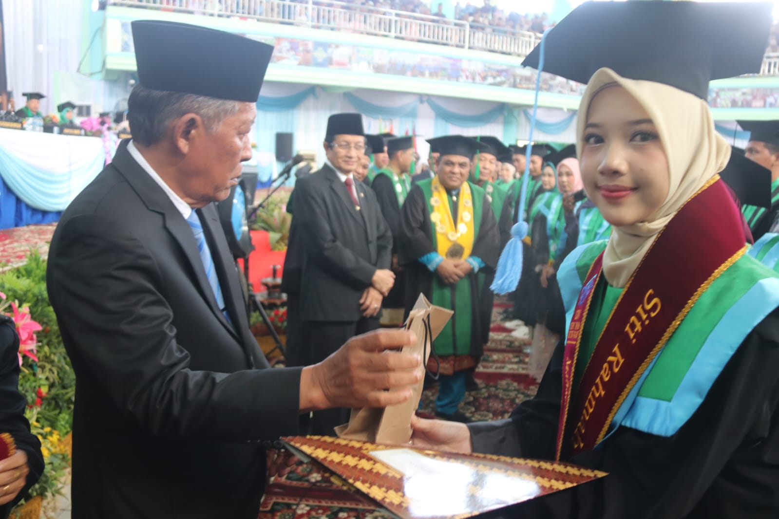 Sebelumnya, Rektor Universitas Islam Negeri Sultan Thaha Saifuddin Jambi, Prof. Dr. H. Kasful Anwar, M.Pd., menyampaikan bahwa hari ini menandai tonggak penting dalam sejarah akademik UIN Sultan Jambi, yaitu pelaksanaan Wisuda Sarjana ke-89, Magister ke-42, dan Doktor ke-18. “Atas limpahan rahmat Allah Subhanahu Wa Ta’ala, kita dapat menyelenggarakan prosesi wisuda hari kedua ini yaitu bahwa pada hari ini, jumlah wisudawan yang dilantik mencapai 713 orang, yang terdiri dari Fakultas Syariah sebanyak 249 orang, Fakultas Ushuluddin dan Studi Agama 78 orang, Fakultas Dakwah 83 orang, Fakultas Dakwah dan Humaniora 70 orang, serta Fakultas Ekonomi dan Bisnis Islam sebanyak 233 orang. Total keseluruhan wisudawan pada hari ini adalah 713 orang,” ujar Rektor UIN. (Waaly Arizona/Foto: Agus Supriyanto, Sobirin/Video: Ardi.S, Reno.S)