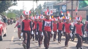 Tampak Semangat dan tegap, semua peserta, dari Tingkat Sekolah Dasar yang mengikuti gerak jalan, masing masing SD Sederajat mengutus dua tim putra dan putri, dengan jumlah keseluruhannya 27 SD Sederajat, 16 Regu Tingkat SMP dan 15 Regu tingkat SMA Sederajat dan ormas dengan jumlah keseluruhan 58 Regu Tim Gerak Jalan.