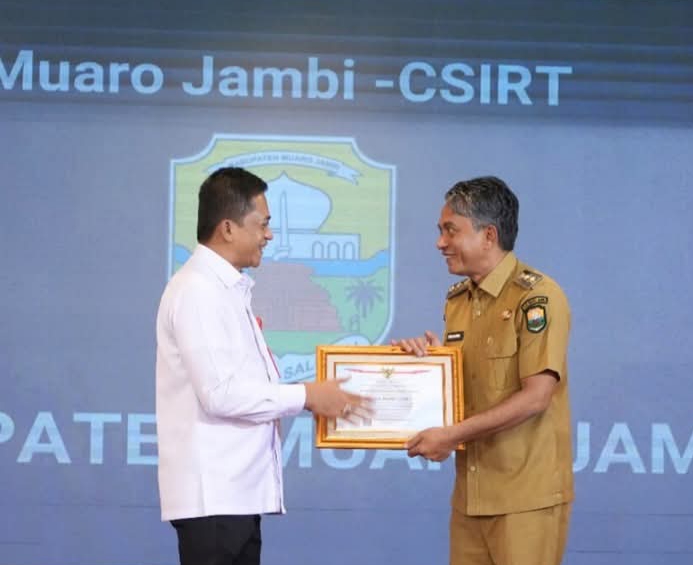 HALOINDONESIANEWS.COM- Wakil Bupati Muaro Jambi Junaidi H. Mahir menghadiri acara Pengukuhan sekaligus Penyerahan Surat Tanda Registrasi Tim Tanggap Insiden Siber (Computer Security Incident Response Team/CSIRT) Pemerintah Kabupaten/Kota se-Provinsi Jambi, yang berlangsung di Auditorium Rumah Dinas Gubernur Jambi, Senin (25/8/2025).