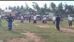Lomba Sepak Bola Sarung yang mempertandingkan antara Regu Ketua RT Lingkungan 1 dan Lingkungan 2, di babak Pertama, Lingkungan 1 Berhasil mencetak gol dan menundukkan para ketua RT Lingkungan 2 , Memasuki Babak Kedua Sebelum Peluit Panjang ditiup, Pesepak Bola Sarung Para Ketua RT Lingkungan 1 Menambah Keunggulan dengan menundukkan Pesepak Bola Sarung Para Ketua RT dalam Lingkungan 2.