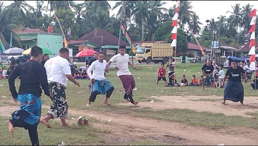 Keseruan Sepak Bola Sarung Warnai Lomba HUT Ke-80 RI di Kampung Baru