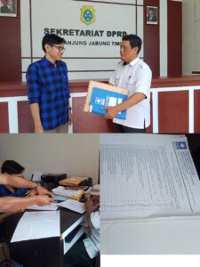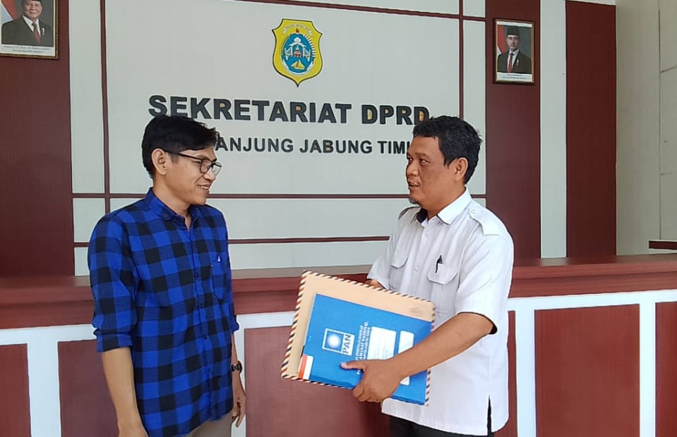 Pengurus DPD PAN Tanjung Jabung Timur menyerahkan berkas permohonan pemberhentian tetap dan usulan PAW Sulpani ke Kasubag TU DPRD Kabupaten Tanjung Jabung Timur.