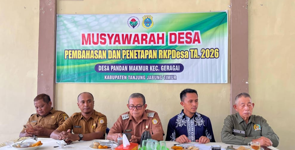 Haloindonesianews.com, Tanjabtim- Guna memastikan rencana pembangunan desa selaras dengan aspirasi masyarakat, Pemerintah Desa Pandan Makmur, Kecamatan Geragai,Kabupaten Tanjung Jabung Timur, menggelar Musyawarah Rencana Pembangunan Desa (Musrenbang) yang membahas rancangan RKPDesa tahun anggaran 2026.