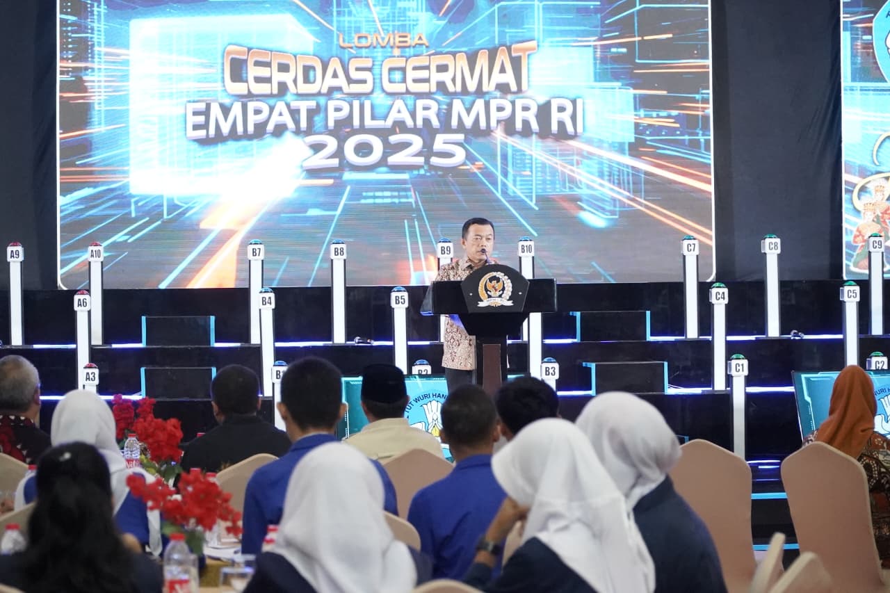 HALOINDONESIANEWS.COM, JAMBI- Gubernur Jambi Dr. H. Al Haris, S.Sos, MH mengemukakan, kegiatan lomba cerdas cermat yang diselenggarakan memiliki makna strategis. Pertama, menjadi media edukasi yang efektif untuk menanamkan nilai-nilai kebangsaan kepada generasi muda. Kedua, menumbuhkan rasa bangga terhadap jati diri bangsa Indonesia. Ketiga, melatih kemampuan berpikir kritis, kerja sama, serta sportivitas dalam berkompetisi. Semua ini merupakan bekal yang sangat penting bagi generasi penerus bangsa dalam menghadapi era globalisasi yang penuh dengan tantangan dan perubahan cepat. Hal tersebut dikemukakannya saat menghadiri Lomba Cerdas Cermat 4 (Empat) Pilar Kebangsaan Tingkat Provinsi Jambi oleh Majelis Permusyawaratan Rakyat Republik Indonesia, bertempat di Swiss-Belhotel Jambi, Kota Jambi, Sabtu (04/10/2025).