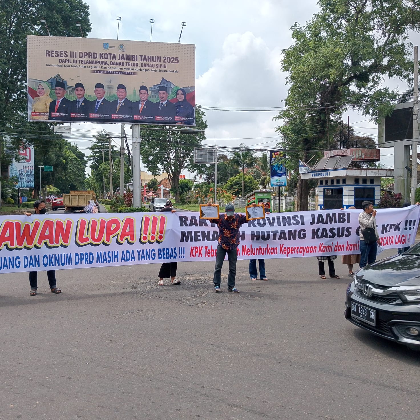 “Kami menagih komitmen KPK. Berdasarkan dakwaan Zumi Zola, ada banyak pemberi suap yang disebutkan, namun hingga 2025 proses hukumnya belum tuntas,” kata Abdullah, Koordinator Aksi sekaligus Ketua JPK Provinsi Jambi.