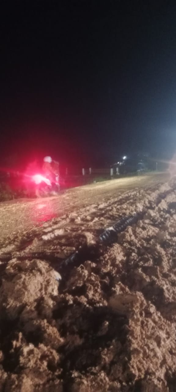 Berdasarkan dari unggahan video dan komentar para pengguna jalan menjelaskan bahwa tanah timbunan material timbunan bahu jalan berserakan di jalan dan mengakibatkan pengendara bisa kecelakaan.