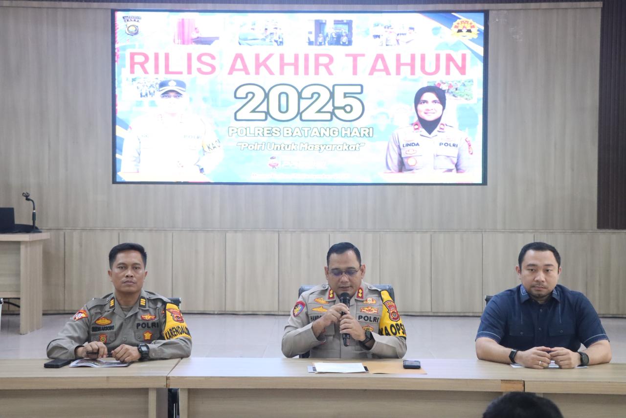 HALOINDONESIANEWS.COM, Batanghari- Polres Batang Hari menggelar Rilis Akhir Tahun 2025, di Balai Laluan Polres Batang Hari. Kegiatan dipimpin Kapolres Batang Hari AKBP Handoyo Yudhy Santosa, dan dihadiri pejabat utama Polres Batanghari serta insan pers. Selasa (30/12/25)