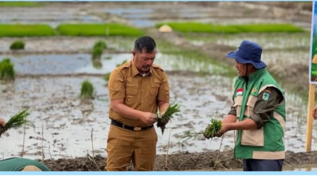 Bupati Monadi Pimpin Tanam Padi Perdana di Pendung Talang Genting, Upaya Bangkitkan Lahan Terbengkalai