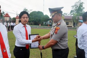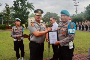 Selain penghargaan prestasi, Kapolres juga menyerahkan Piagam Penghargaan sebagai bentuk penghormatan negara kepada anggota Polri yang telah menunjukkan apresiasi atas dedikasi, kerja keras, dan prestasi luar biasa yang melebihi panggilan tugas.