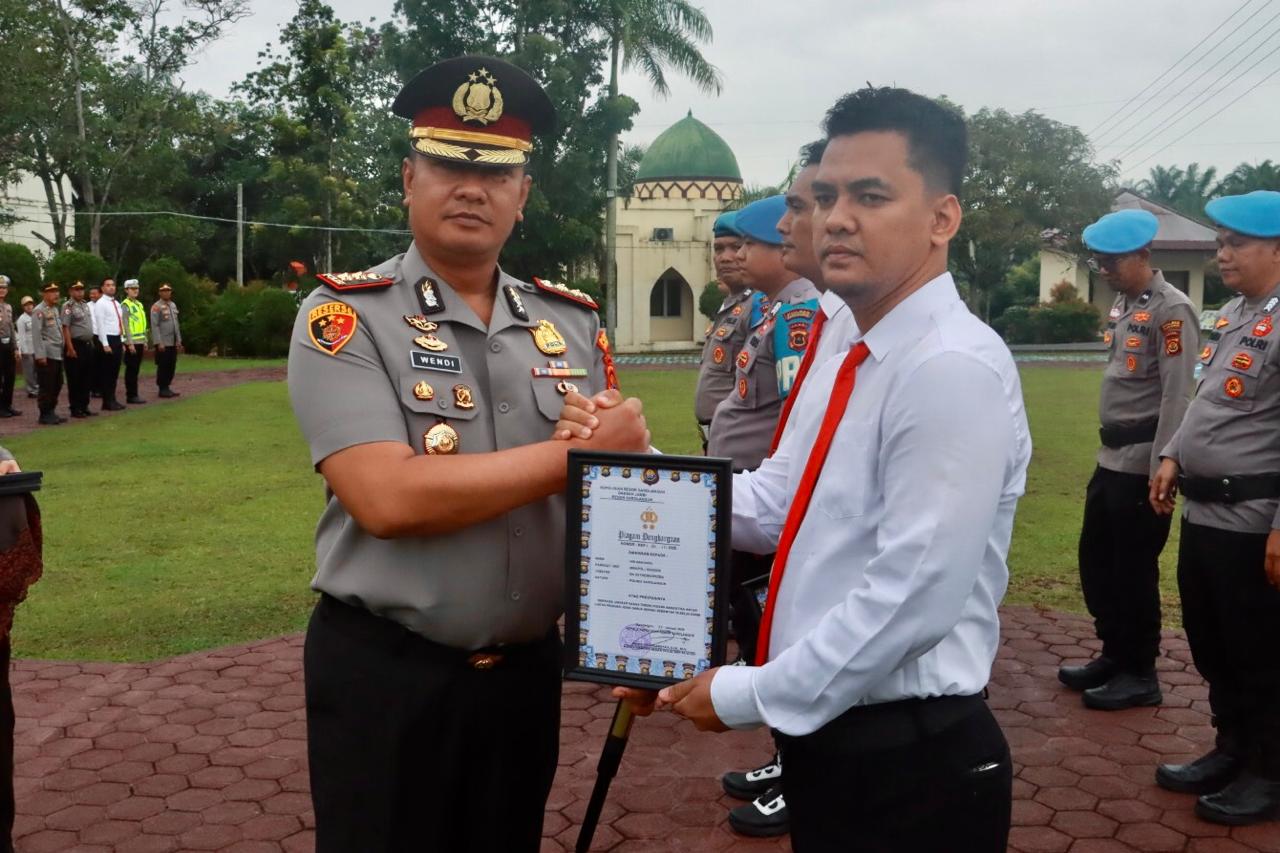 Dalam amanatnya, Kapolres AKBP Wendi Oktariansyah, menyampaikan pemberian penghargaan ini merupakan bentuk apresiasi institusi kepada personel yang telah menunjukkan dedikasi, loyalitas, serta kinerja melampaui tugas pokok dan fungsi yang diemban.