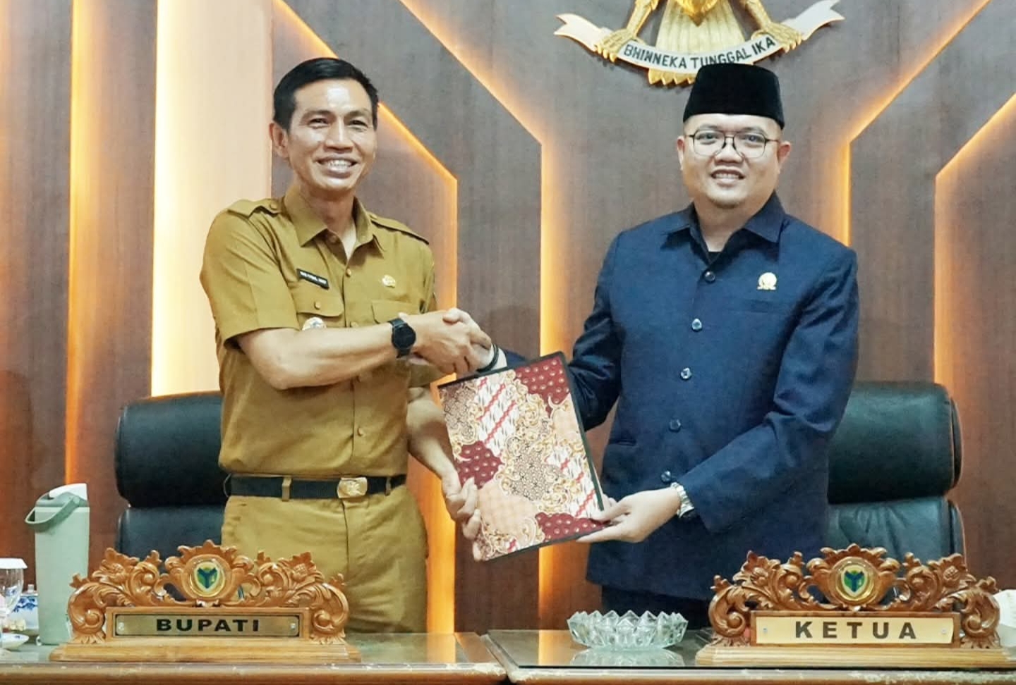 Seusainya Bupati Fadhil Arif menyampaikan Laporan Keterangan Pertanggung jawaban (LKPJ) Tahun 2025, Bupati menyerahkan laporanya ke Wakil Ketua DPRD Batanghari Firdaus.