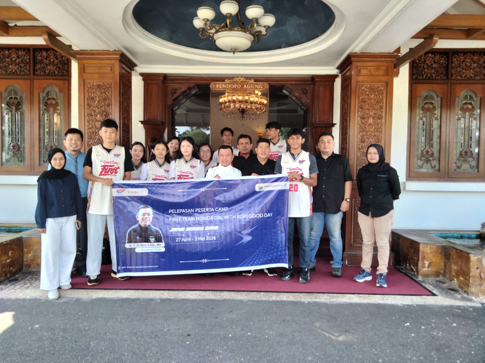HALOINDONESIANEWS.COM, JAMBI- Tim basket pelajar Jambi resmi dilepas untuk mengikuti First Team Training Camp DBL Champion Jambi Independent. Kegiatan pelepasan tersebut berlangsung di Ruang Pendopo Agung Rumah Dinas Gubernur Jambi, Senin (20/4/2026) pagi.